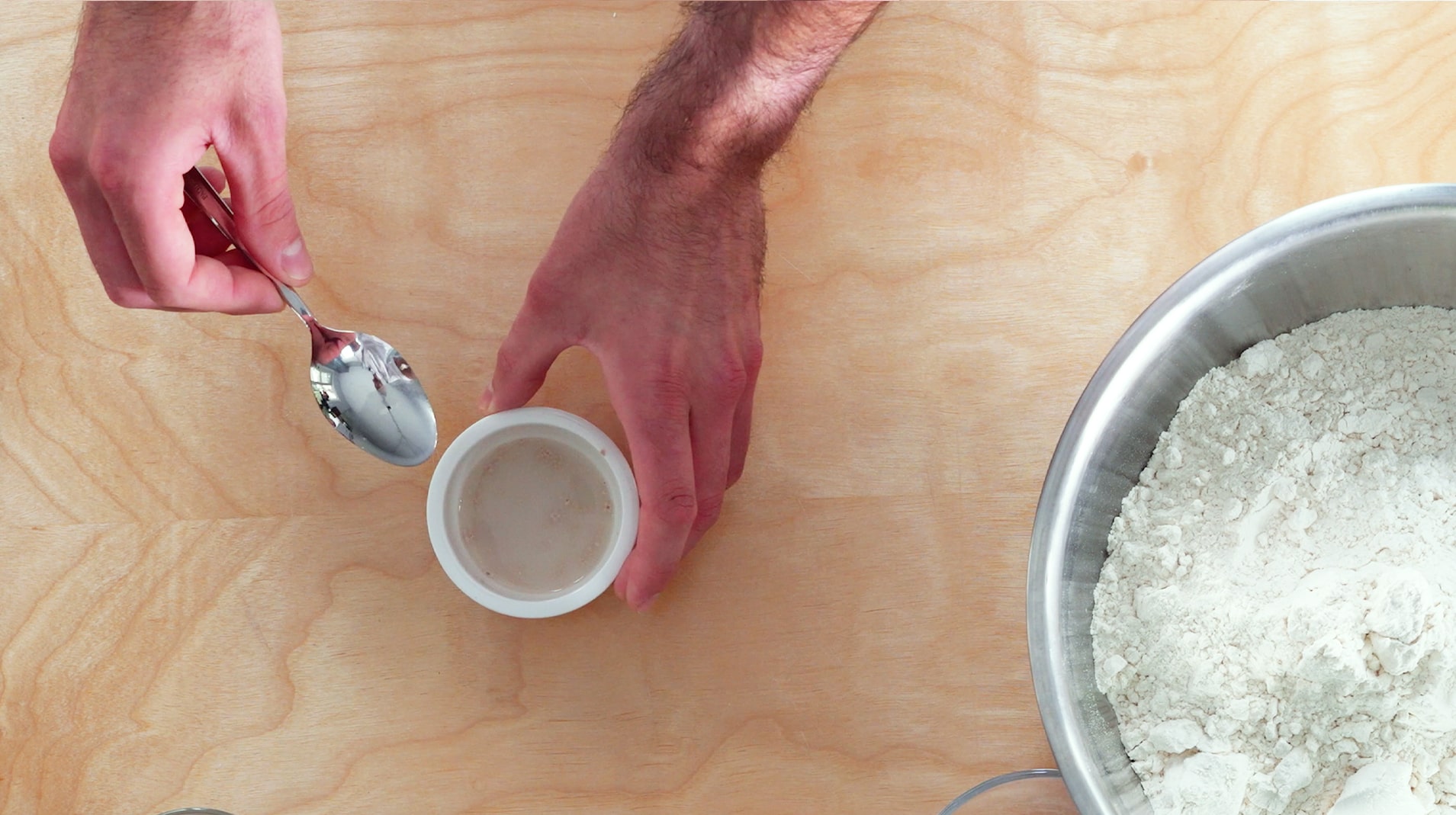 Fill a small cup with lukewarm water and add the Active Dry Yeast, using a spoon to thoroughly mix until dissolved. Set the yeast aside for 10 minutes to activate.