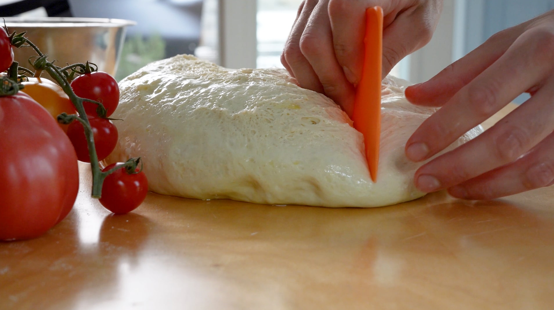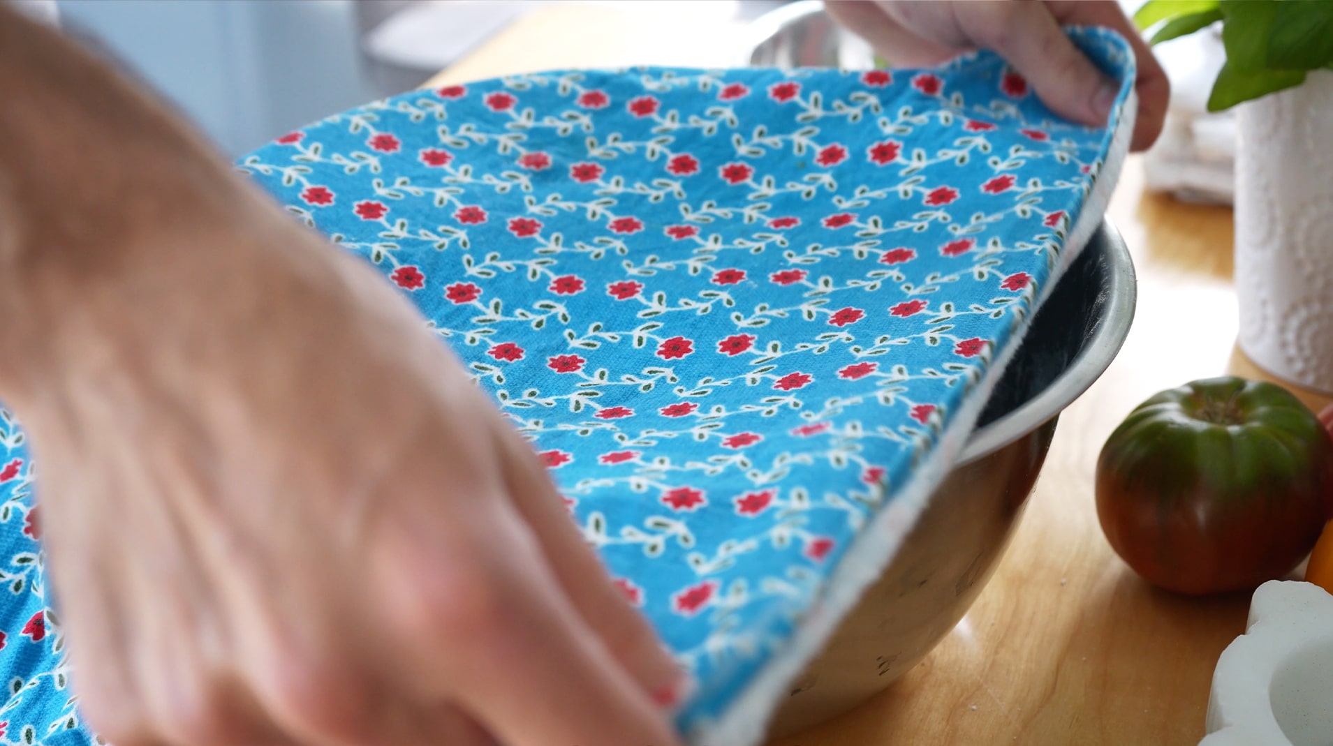 When the dough appears smooth, cover it with a damp tea towel and leave it to rise at room temperature for another 20 minutes.