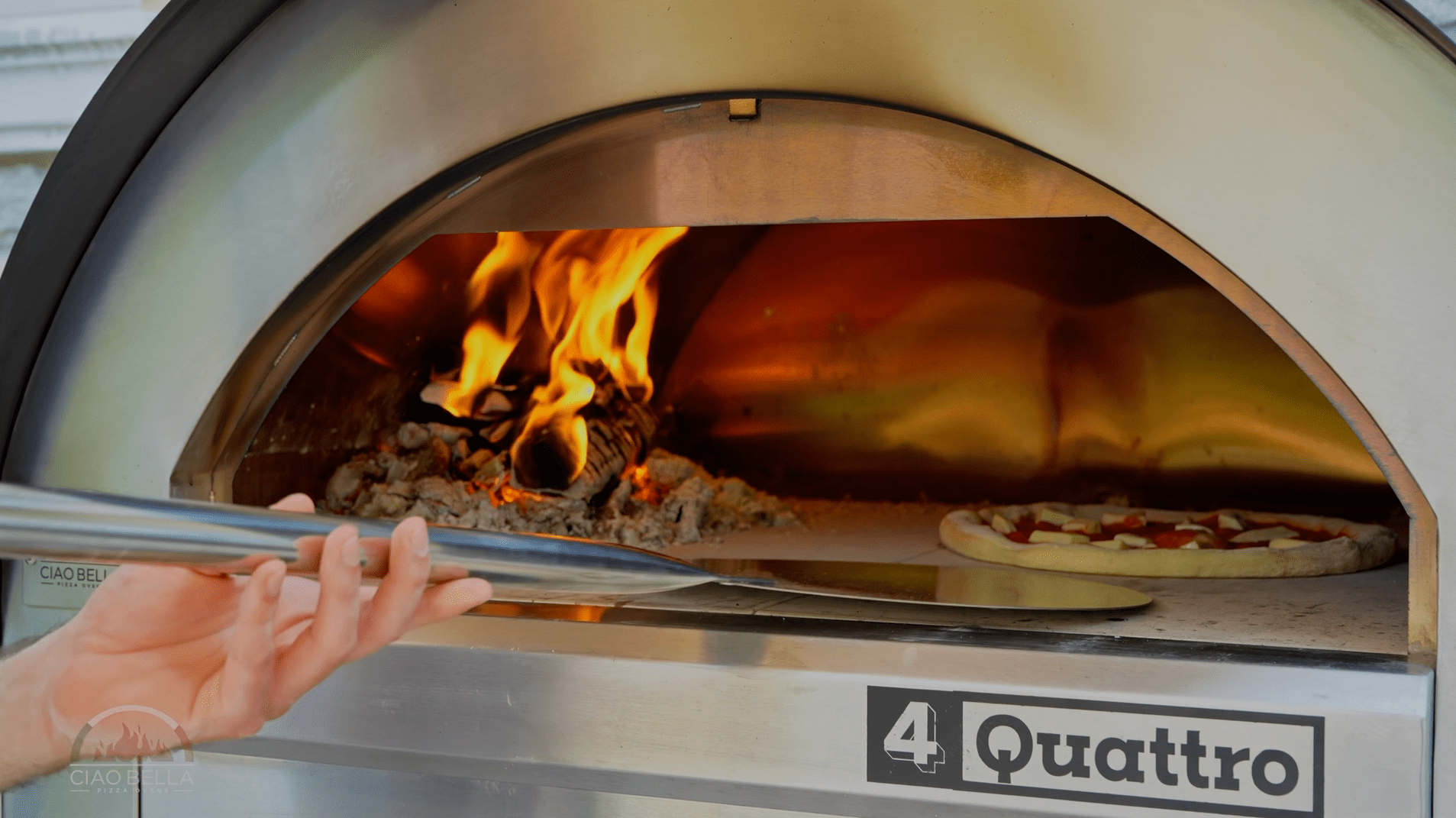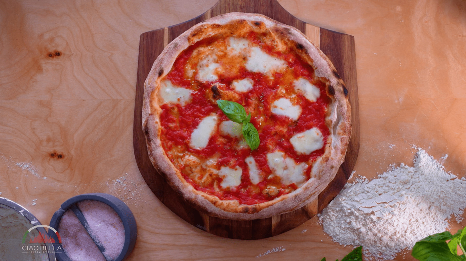 Fire up your Ciao Bella Pizza Oven. Aim for 716°F (380°C) on the stones. You can check the temperature inside your oven quickly and easily using the built-in temperature thermometer gauge.