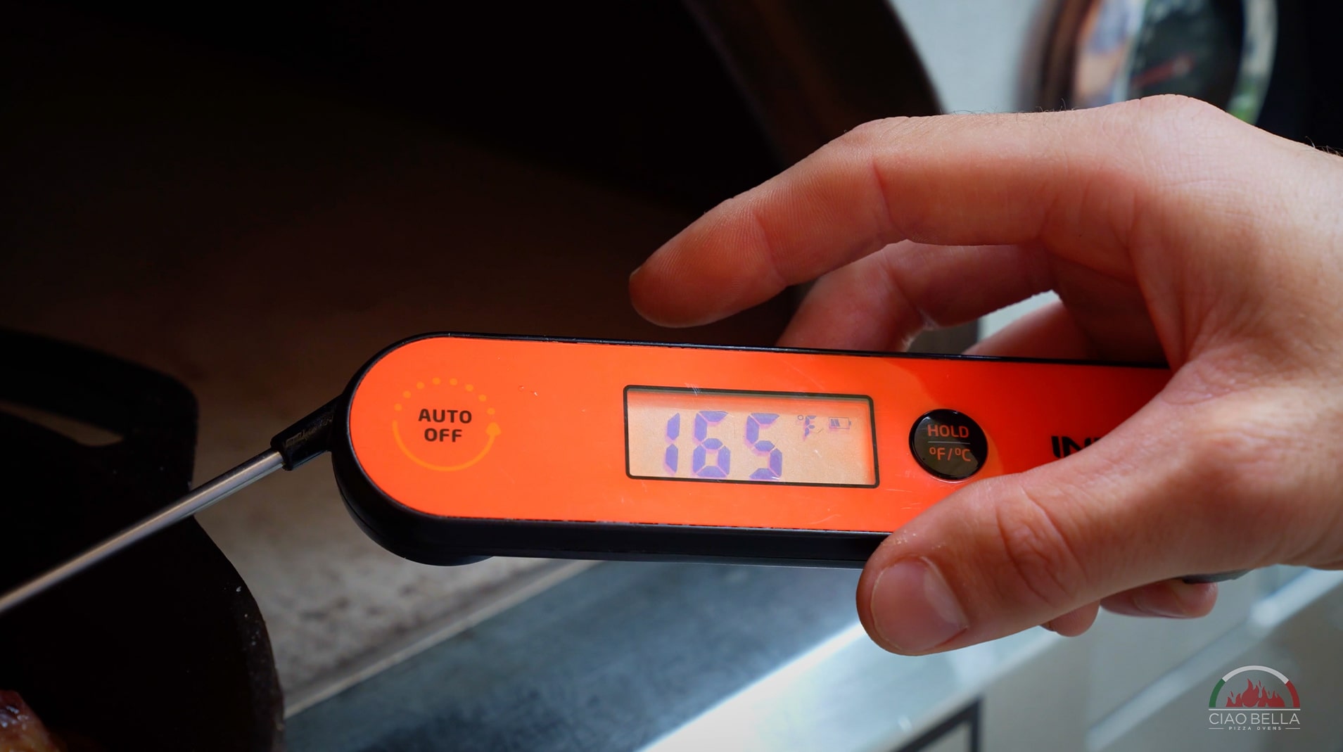 Fire up your Ciao Bella Pizza Oven. Aim for 350°F on the stones. You can check the temperature inside your oven quickly and easily using the built-in temperature thermometer gauge.